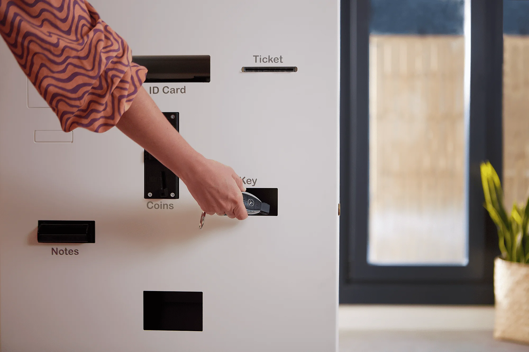 For proximity cards, conventional keys, or magnetic stripe keys. Models available for both indoor and outdoor use. Dispenses the key upon scanning a QR code.